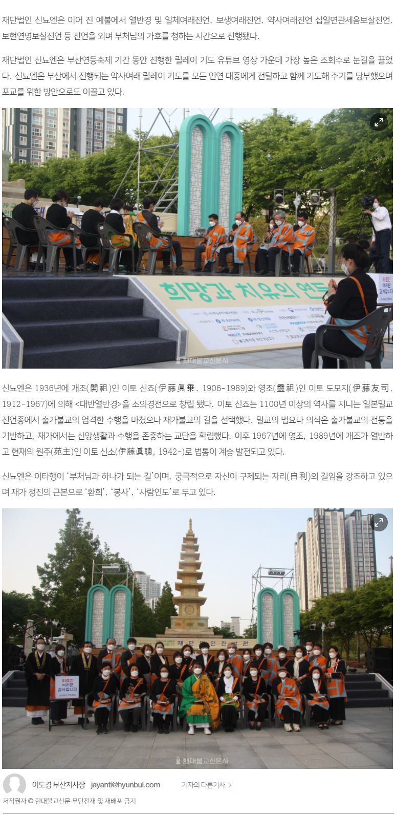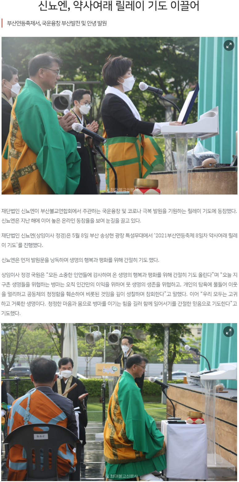 [현대불교] 신뇨엔, 약사여래 릴레이 기도 이끌어 페이지 정보 작성자 최고관리자 작성일21-06-22 17:34 조회993회 댓글0건 이전글 다음글 목록 본문 ▶뉴스 자세히 보기 http://www.hyunbulnews.com/news/articleView.html?idxno=401329 댓글목록 등록된 댓글이 없습니다. 이전글 다음글 목록